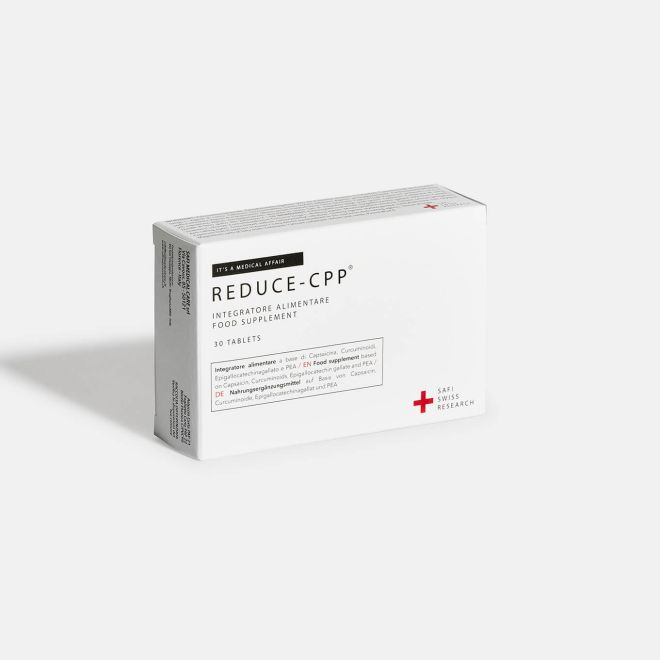 Reduce-CPP® è un integratore alimentare sviluppato per supportare la gestione dei processi neuroinfiammatori grazie a un’azione combinata antiossidante e modulatrice del dolore. La sua formula avanzata include capsaicina, curcuminoidi, epigallocatechina-gallato e PEA
